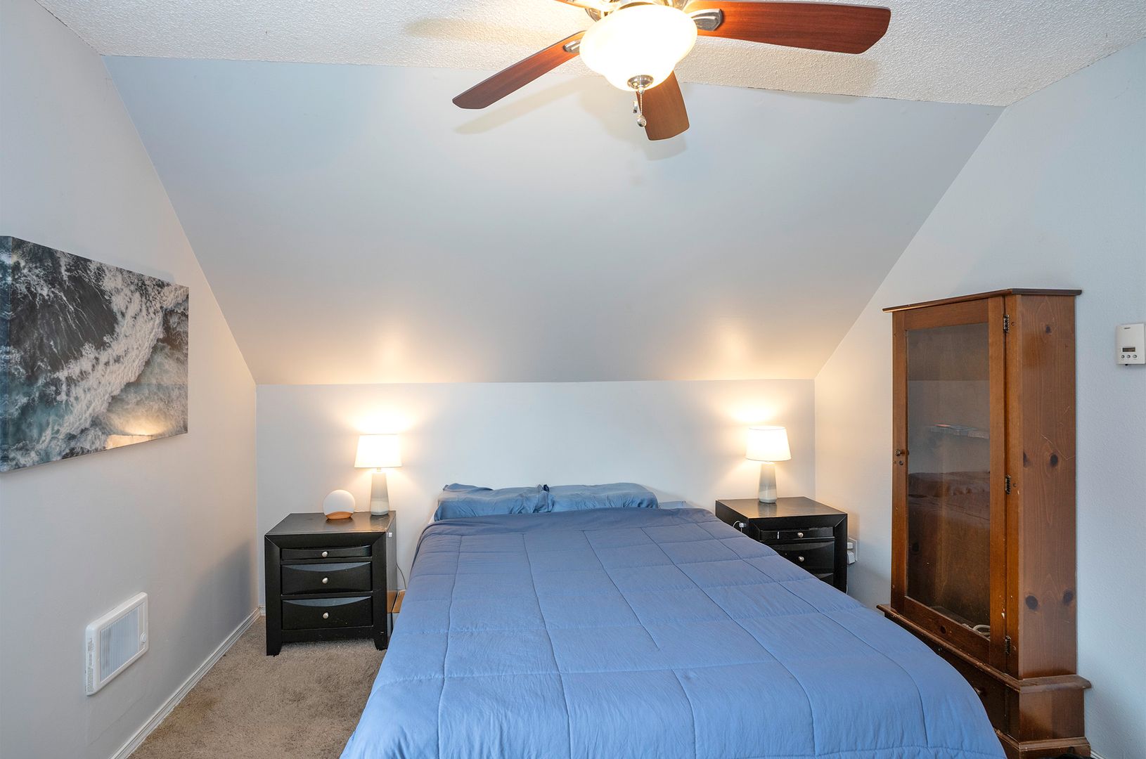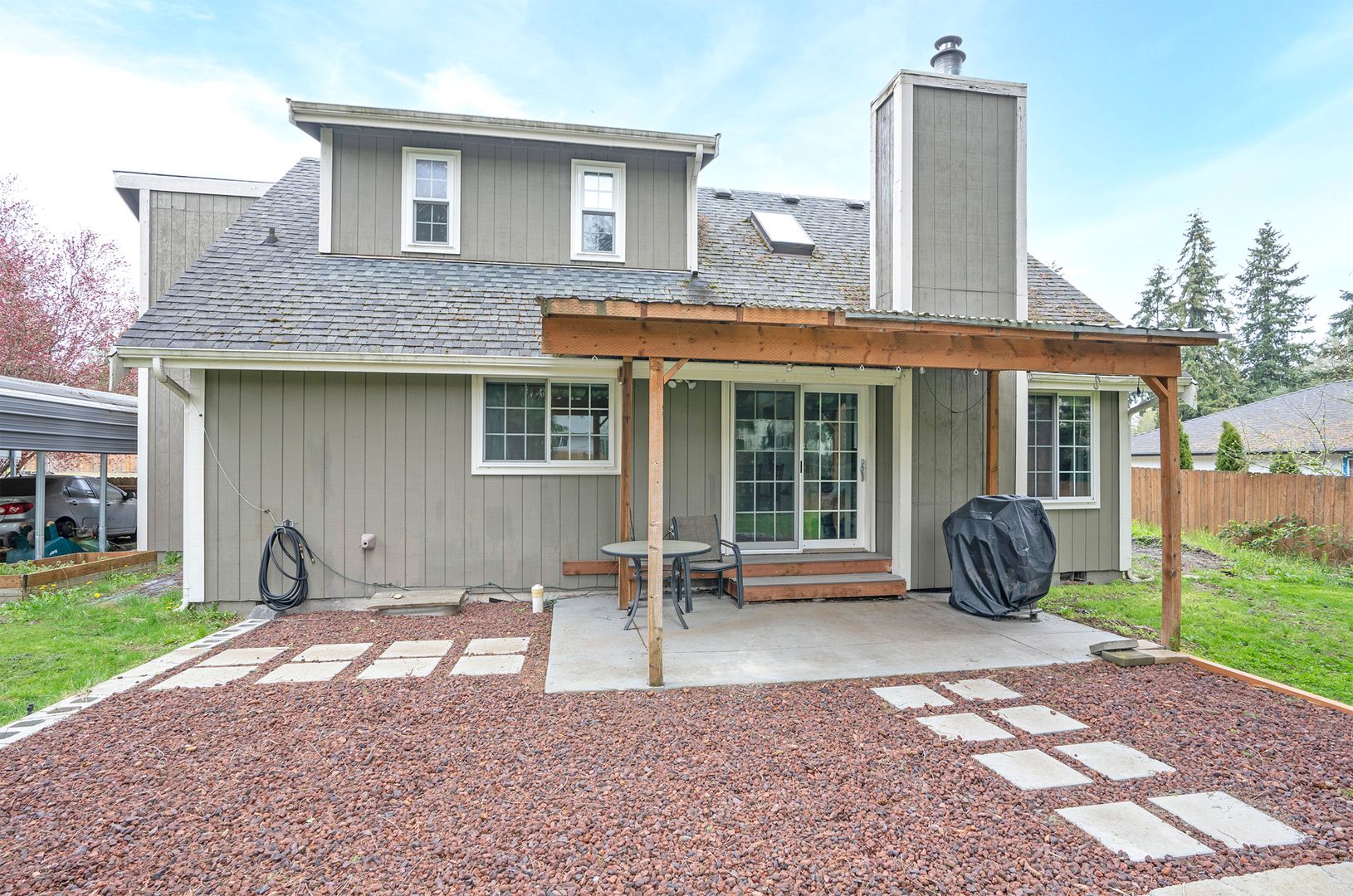 Welcome to 8810 159th St E in Puyallup—a beautifully updated 3-bedroom, 2-bathroom home nestled on a private corner lot in the desirable Rainier Meadows neighborhood. The open-concept kitchen and living room, complete with quartz countertops, stainless steel appliances, and a wood-burning fireplace, create an inviting space perfect for everyday living and entertaining. Enjoy indoor-outdoor flow with a covered back patio and firepit area, ideal for year-round gatherings. The main level features two spacious bedrooms, while the upper level offers a cozy loft and a private primary suite with walk-in closet and bonus office/workspace.