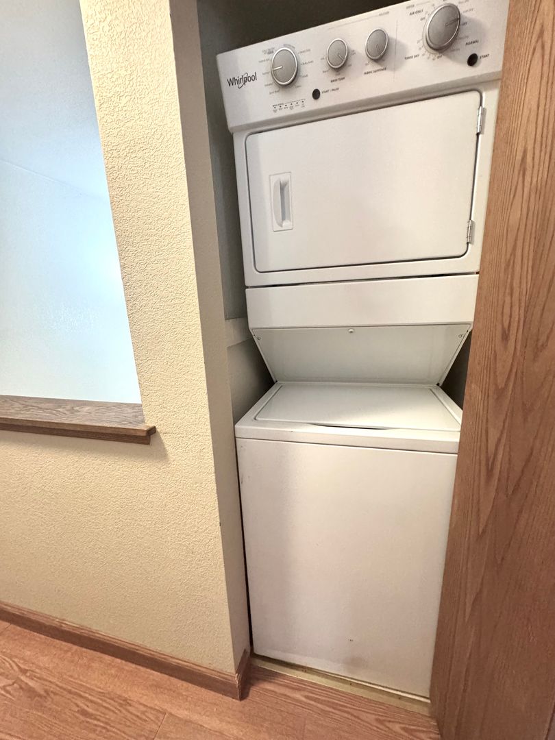 Welcome to Rosedale Commons in Gig Harbor! This well-maintained 2-bedroom, 2-bath townhouse offers comfort and convenience with laminate hardwood flooring, abundant natural light, and a cozy wood-burning fireplace. The kitchen includes a refrigerator, dishwasher, microwave, and electric range, while the upstairs stackable washer/dryer adds everyday ease. Two spacious bedrooms and two full bathrooms make this home move-in ready. Water, sewer, and landscaping are included!