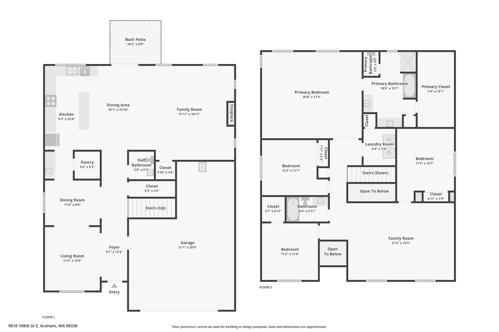 Welcome home to this beautifully well maintained at 9818 198th St E in Graham. With 4 bedrooms, 2.5 bathrooms, and over 3,100 square feet of living space, this home offers room to spread out and settle in comfortably. Multiple living areas—including a welcoming family room and a generous bonus room—create the perfect setting for relaxing, entertaining, or making memories. Cozy up by the fireplace, enjoy the blend of hardwood and carpet flooring, and appreciate the natural light filtered through blinds on every window. Step outside to a patio along with fully fenced yard, ideal for play, pets, or peaceful evenings. An oversized 2 car garage adds room for a shop or additional storage for convenience, rounding out a home that feels both functional and inviting.