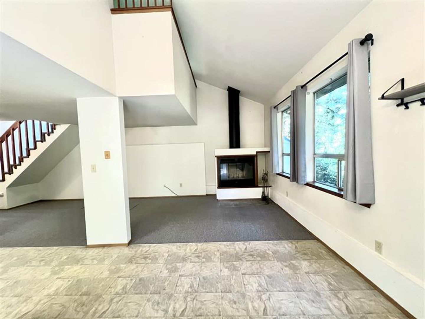 The main level features a living room that seamlessly flows into the dining area, creating an inviting atmosphere for relaxation and entertaining. The kitchen is equipped with essential appliances and ample storage, making meal preparation convenient and efficient.
